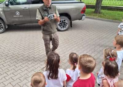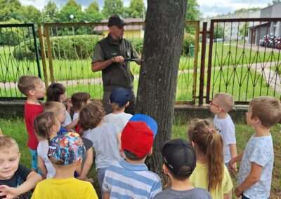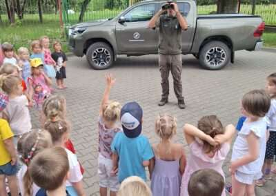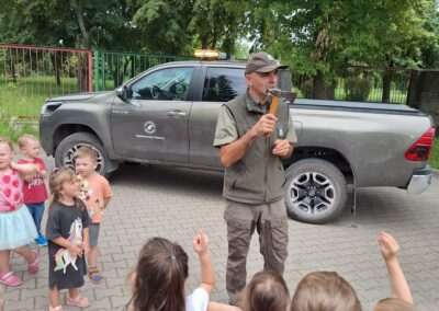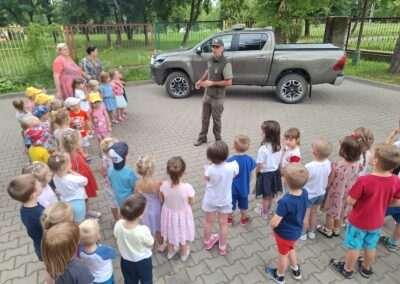W miniony wtorek nasze przedszkole odwiedził Nadleśniczy pełniący funkcję Strażnika Leśnego. Dzieci z grupy Jeżyków miały okazję poznać sprzęt wykorzystywany w codziennej pracy oraz obowiązki jakie pełnią przedstawiciele tego zawodu.