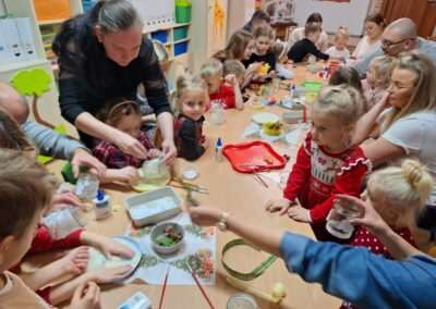 W mijającym tygodniu w grupie Jeżyków odbyły się bożonarodzeniowe warsztaty z Rodzicami. Podczas spotkania Rodzice wspólnie z Przedszkolakami wykonywali świąteczne lampiony. Do prac użyliśmy słoików, kleju, wiórków kokosowych, wstążek i duuużo kreatywności.😊