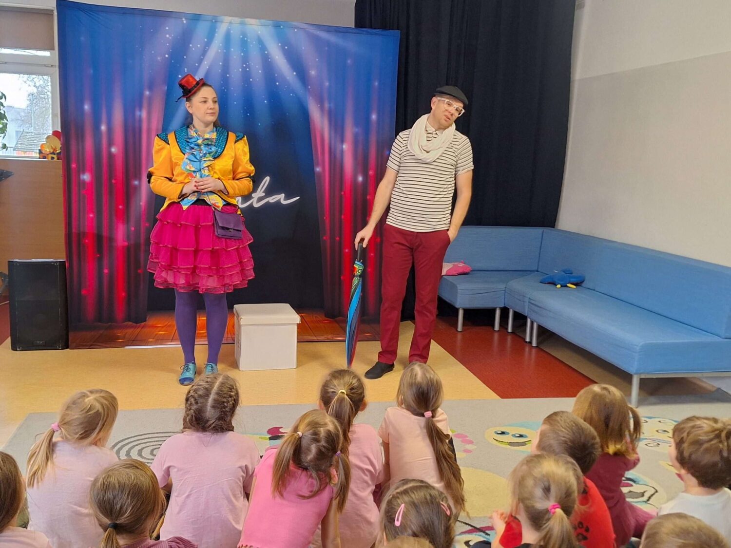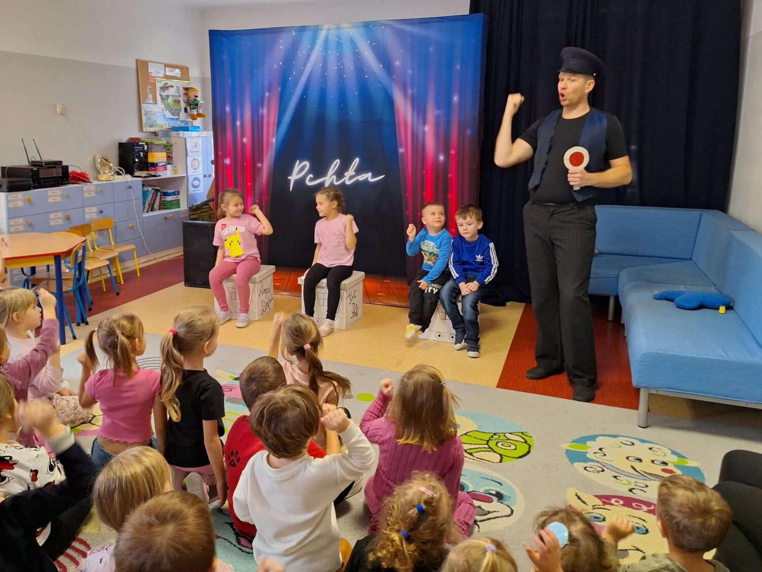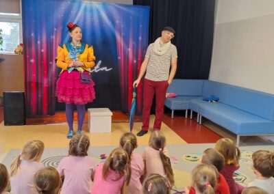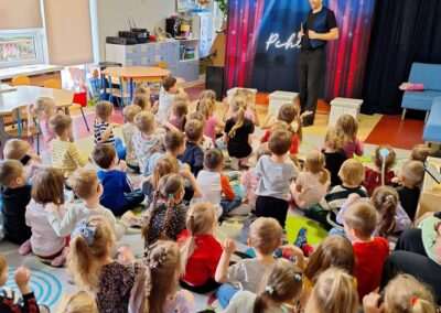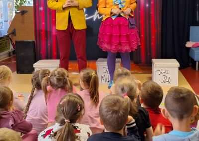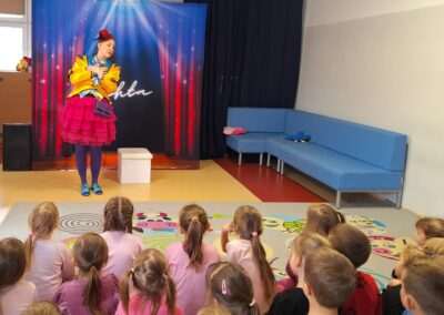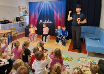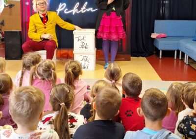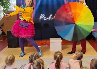 W minionym tygodniu nasze przedszkole odwiedził Teatr TAK ze spektaklem pt.: „O pchle, co manier nie miała”. Dzieci poznały przygody małej pchły, która uczyła się zasad dobrego zachowania. Przedszkolaki obcowały ze sztuką teatralną i aktywnie uczestniczyły w tańcach i zabawach proponowanych przez aktorów. Poprzez śmiech i zabawę utrwalały reguły kulturalnego zachowania się w różnych sytuacjach społecznych.