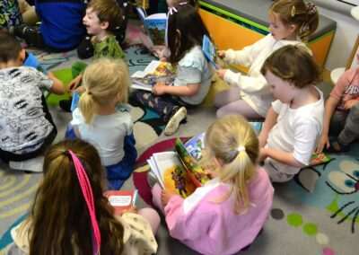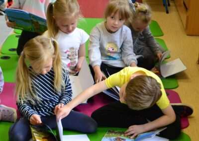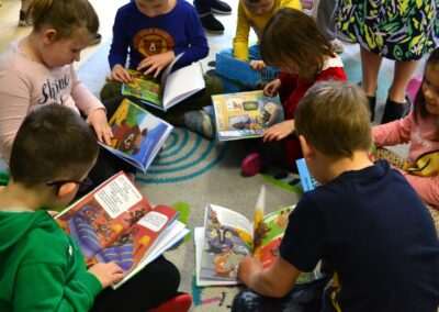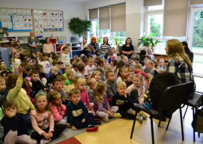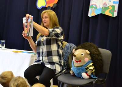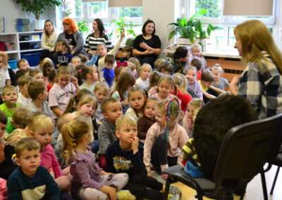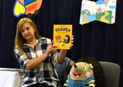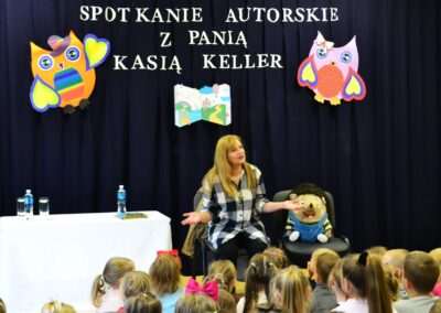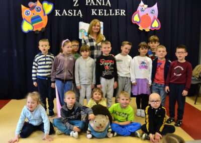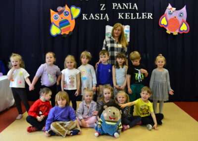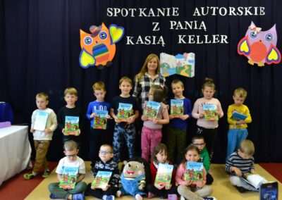 W miniony piątek grupy Średniaków i Starszaków z naszego przedszkola brały udział w spotkaniu autorskim z Panią Kasią Keller – autorką książek dla dzieci, serii m.in. przygód Jeżyka Franka, odkryć jego siostry Zosi oraz doświadczeń innych zwierząt w Krainie Pełnej Emocji. Podczas spotkania dzieci dowiedziały się, jak powstaje książka, czym jest wyobraźnia oraz skąd Pani Kasia zaczerpnęła pomysł na opowiadania o lubianym przez przedszkolaków Jeżyku Franku. Była to nie tylko okazja do rozmów, zadawania pytań i wspólnego czytania książek, ale przede wszystkim rozwijania zainteresowania dzieci czytelnictwem i wspierania ich ciekawości poznawania świata. Pani Kasi serdecznie dziękujemy za spotkanie!🙂