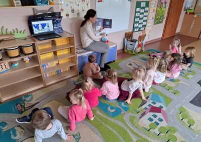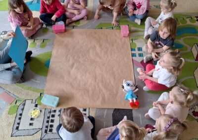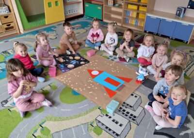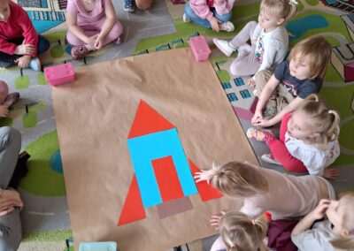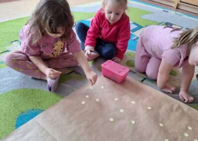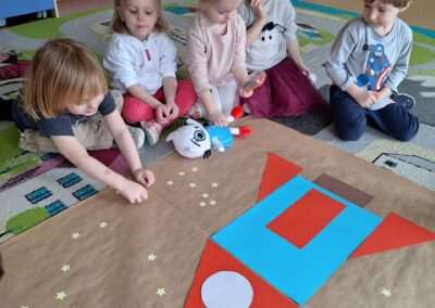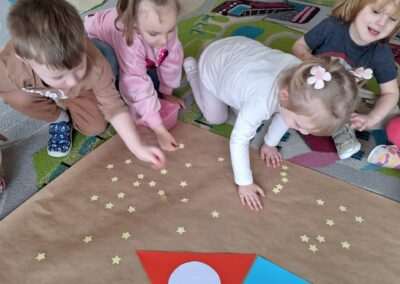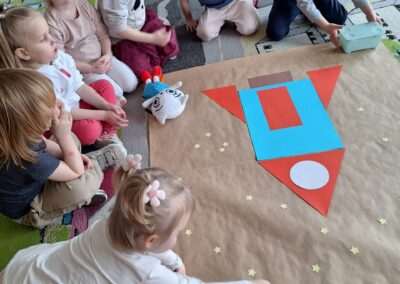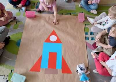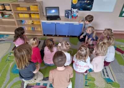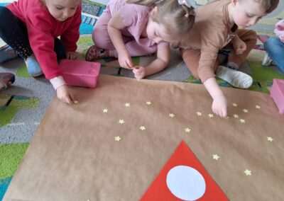 Za nami kolejne spotkanie z KiciÄ… KociÄ…. Tym razem, przedszkolaki z grupy Jeżyków, wspólnie z KotkÄ…, wyruszyÅ‚y w wyjÄ…tkowÄ… podróż – w kosmos! Dzieci wysÅ‚uchaÅ‚y opowiadania pt.: „Kicia Kocia w kosmosie”, nastÄ™pnie obejrzaÅ‚y film edukacyjny prezentujÄ…cy tajemnice ukÅ‚adu sÅ‚onecznego. Podsumowaniem zajęć byÅ‚a zabawa matematyczna polegajÄ…ca na konstruowaniu wspólnej rakiety. ByÅ‚a to okazja do poznawania i utrwalania kolorów i ksztaÅ‚tów, oraz pracy grupowej i wspólnego tworzenia gwiazdozbiorów.