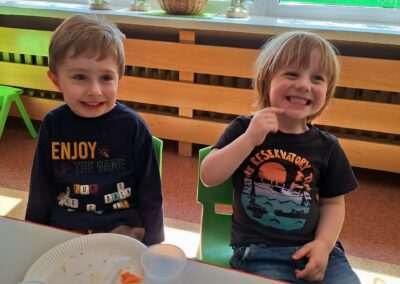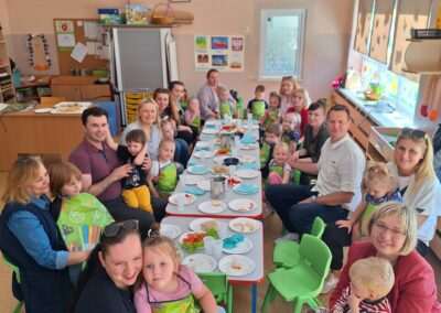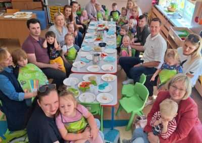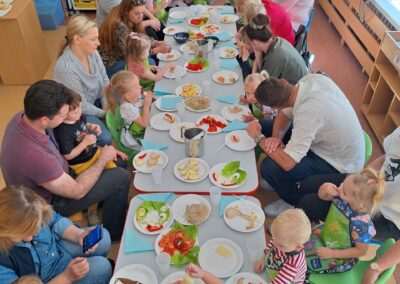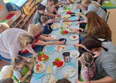W miniony czwartek przedszkolaki z grupy Jeżyków spędzały czas wspólnie ze swoimi najbliższymi. W ramach rodzinnych warsztatów kulinarnych dzieci przygotowywały wiosenne kanapki. Celem zajęć było wspieranie samodzielności dzieci oraz promowanie zdrowych nawyków żywieniowych.