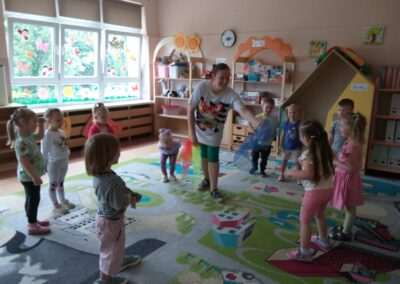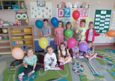 Z okazji Dnia Dziecka odwiedziła naszą grupę Pani Aleksandra z propozycją gier i zabaw dla dzieci. Od rana panowała radosna  atmosfera, były konkursy oraz gry zręcznościowe. Na zakończenie wszystkie dzieci otrzymały prezenty przygotowane przez rodziców. Życzymy dzieciom samych pogodnych dni oraz dużo radości podczas odkrywania świata.