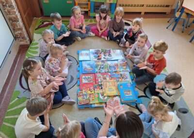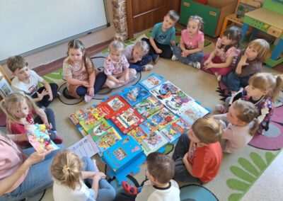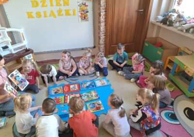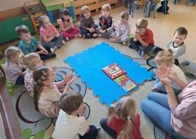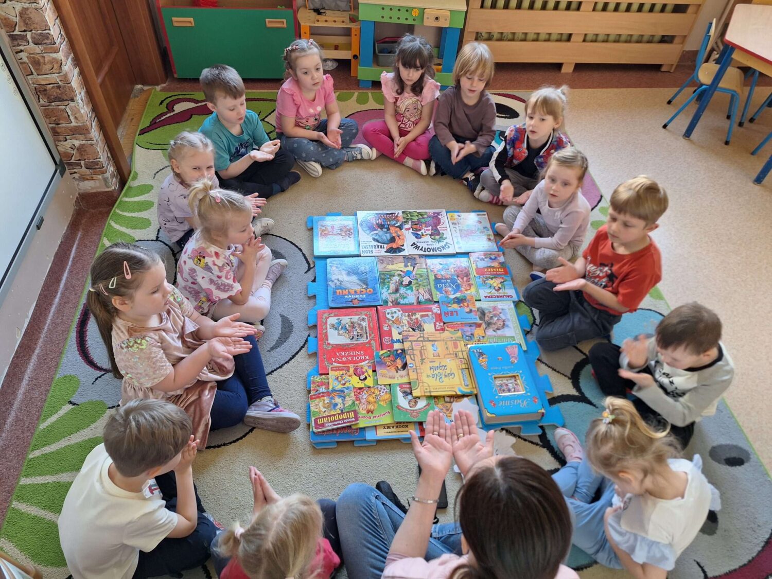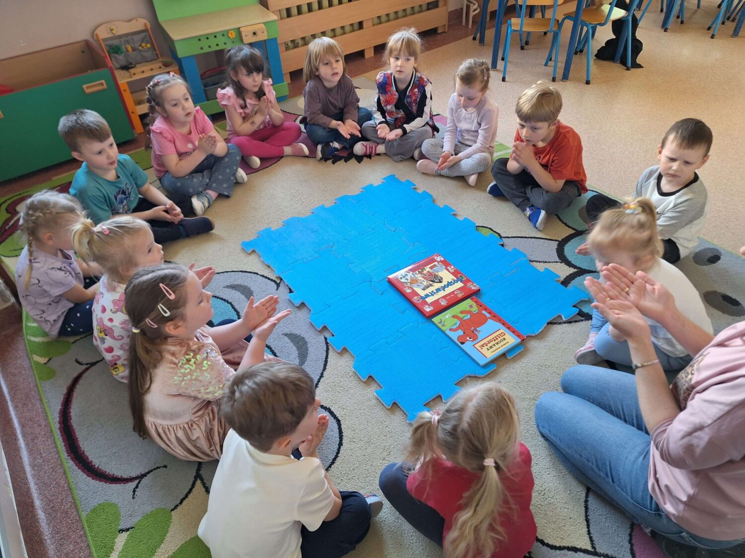 W kwietniu w ramach realizacji innowacji „Małe rączki są gotowe do migania w święta nietypowe” obchodziliśmy „dzień książki”. Podczas zajęć dzieci opowiadały o swoich ulubionych książkach i bohaterach. Poznały różne rodzaje książek i oczywiście nie mogło zabraknąć poznawania gestów w języku migowym.