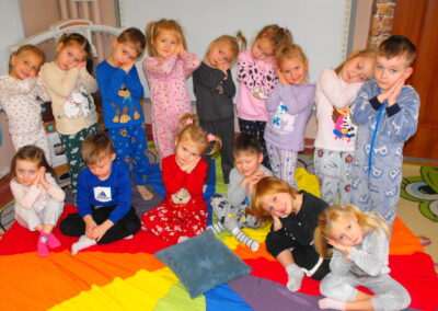 28 listopada w naszym przedszkolu została zorganizowana akcja charytatywna na rzecz dzieci chorych onkologicznie „Dzień piżamy” pod hasłem „Obudź w sobie Anioła”. Pomysłodawcą jest Fundacja „Gdy liczy się czas” założona przez rodziców dzieci chorych onkologicznie. Przedszkolaki przyszły ubrane w piżamki na znak solidarności z chorymi dziećmi. Podczas zajęć rozmawialiśmy jak możemy dbać o zdrowie, a także nie zabrakło zabaw ruchowych. Najważniejsze w tym dniu było przesłanie wsparcia i empatii dzieciom przebywającym w szpitalach.