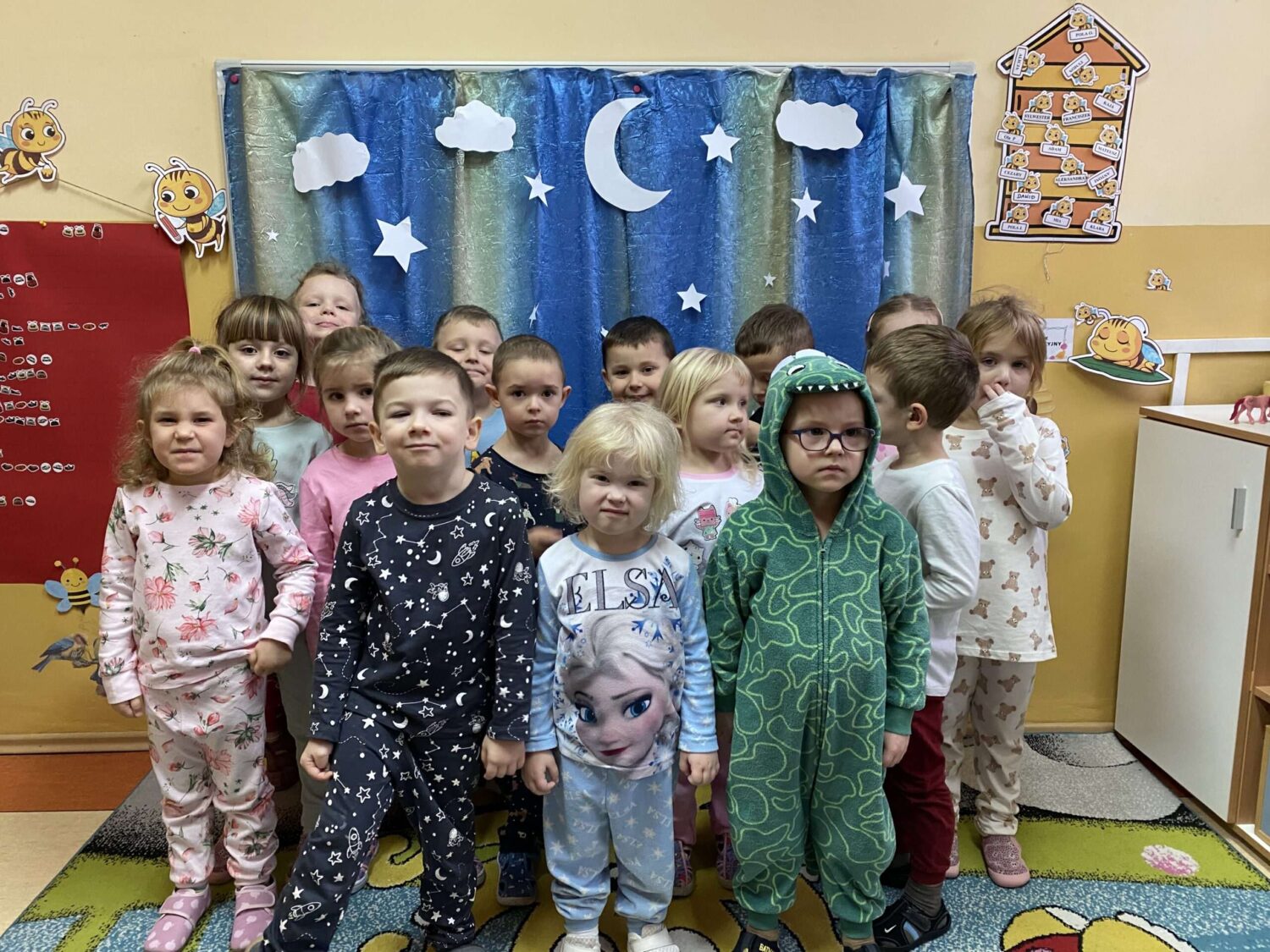,,Dzień Piżamy” – obudź w sobie Anioła . 5 złotóweczka dla zdrowia dziecka . Grupa Pszczółek w solidarności z chorymi dziećmi .