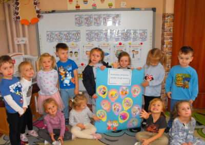 20 listopada to wyjątkowy dzień – rocznica uchwalenia „Konwencji o prawach dziecka”. Przedszkolaki dowiedziały się, jakie mają prawa, ale również, oprócz praw, jakie mają obowiązki. Każde dziecko, bez względu na swoje pochodzenie, narodowość, przynależność etniczną, kolor skóry, wyznawaną religię, status społeczno-ekonomiczny ma takie same prawa. Dzieci w tym dniu przyszły ubrane na niebiesko, jako symbol solidarności ze wszystkimi dziećmi na świecie.