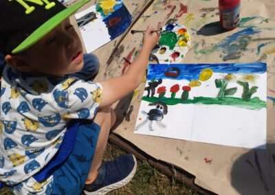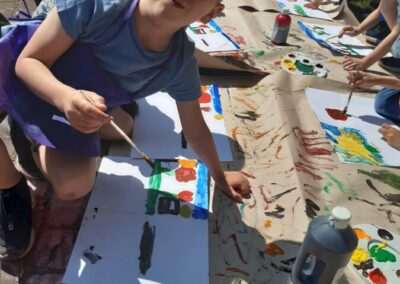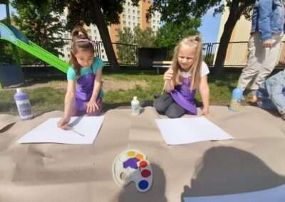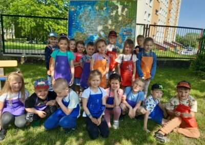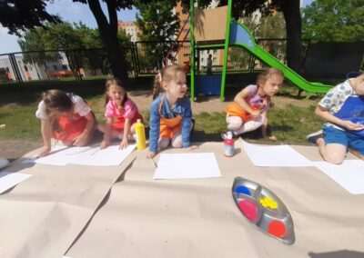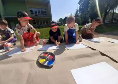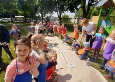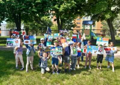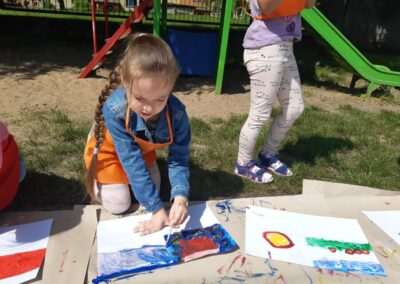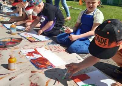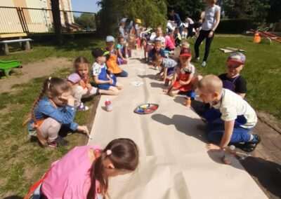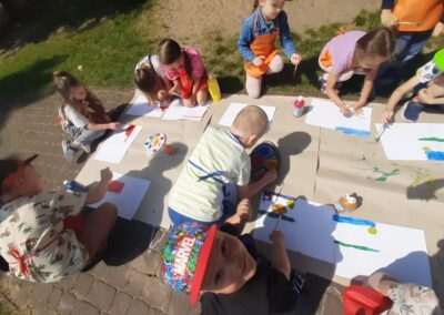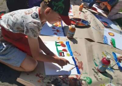 30 maja grupa uczestniczyła w warsztatach pt: ,,Europa muzyką malowana” w ogrodzie przedszkolnym , dzieci malowały farbami ilustracje do muzyki z różnych zakątków świata.