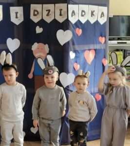 W dniu 31.01.2025r. w grupie biedronek świętowaliśmy Dzień Babci i Dziadka. Z tej okazji przygotowaliśmy dla nich niespodziankę – mini inscenizację pt. „Marchewkowa niespodzianka dla Babci i Dziadka”, piosenkę i taniec, a po występie dzieci wreczyły drobne upominki. Dzieci miały okazję poznać piękny sposób okazywania szacunku i uczuć starszym osobom, a nasi szanowni Dziadkowie mogli cieszyć się ze wspaniałych występów swoich wnuczków.