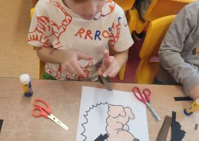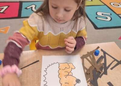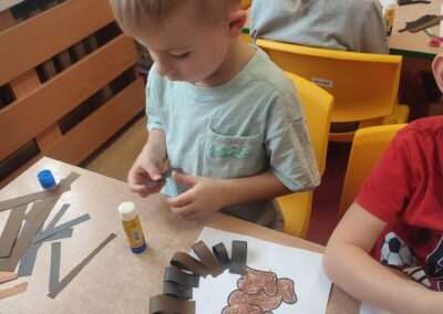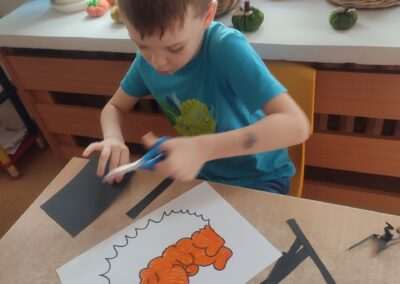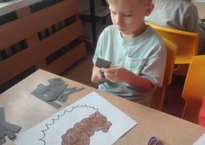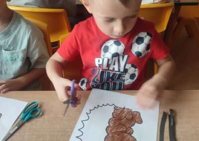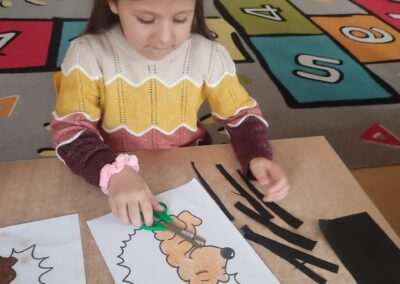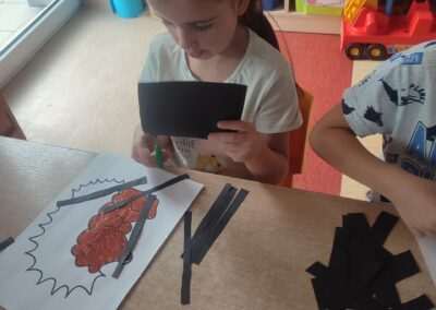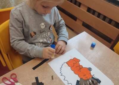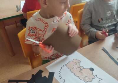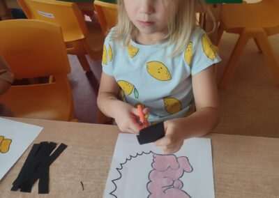 W trakcie tworzenia prac dzieci ćwiczyły chwyt narzędzia pisarskiego, staranność, precyzję oraz koordynację wzrokowo-ruchową, a także rozwijały motorykę małą.