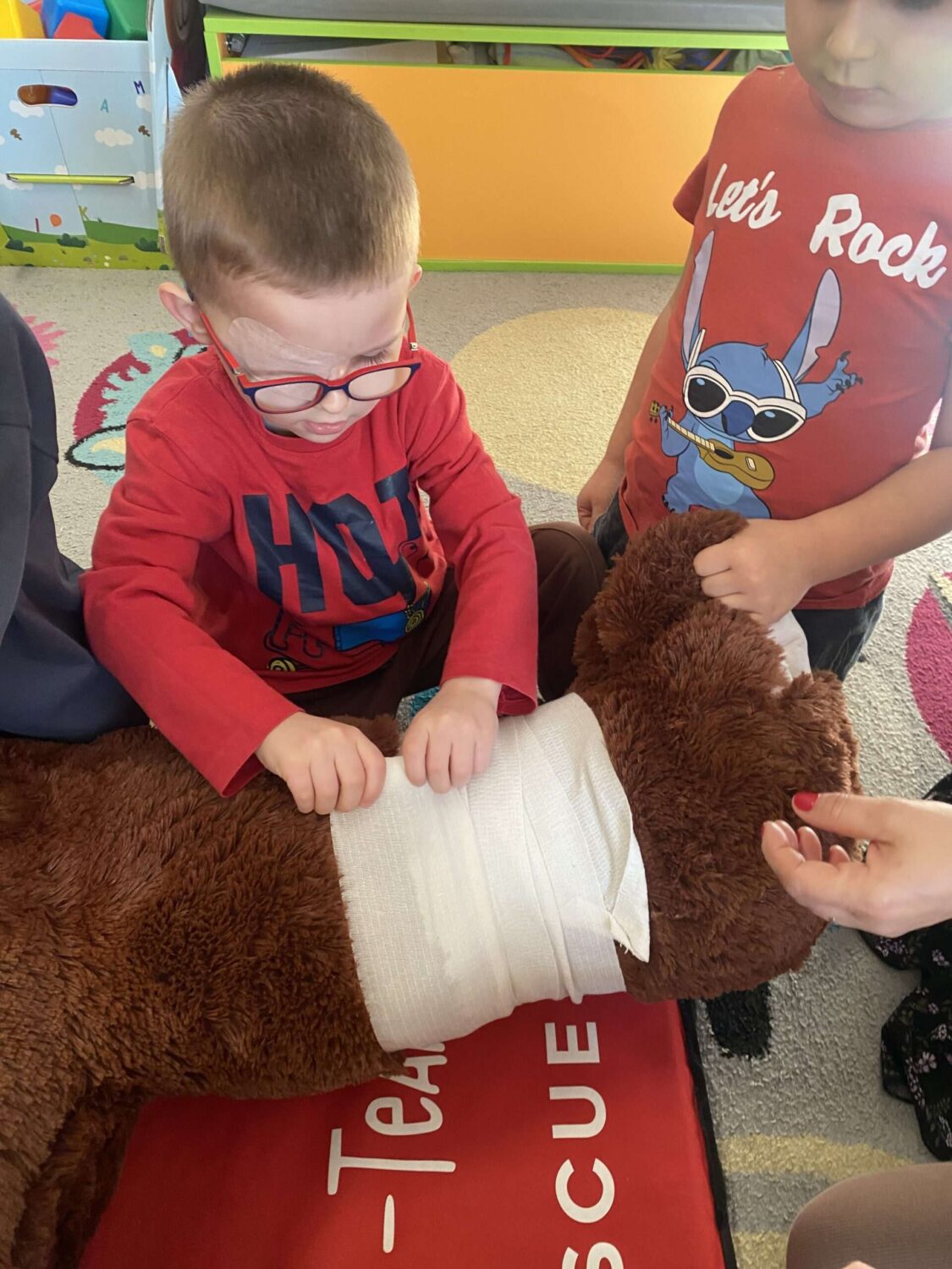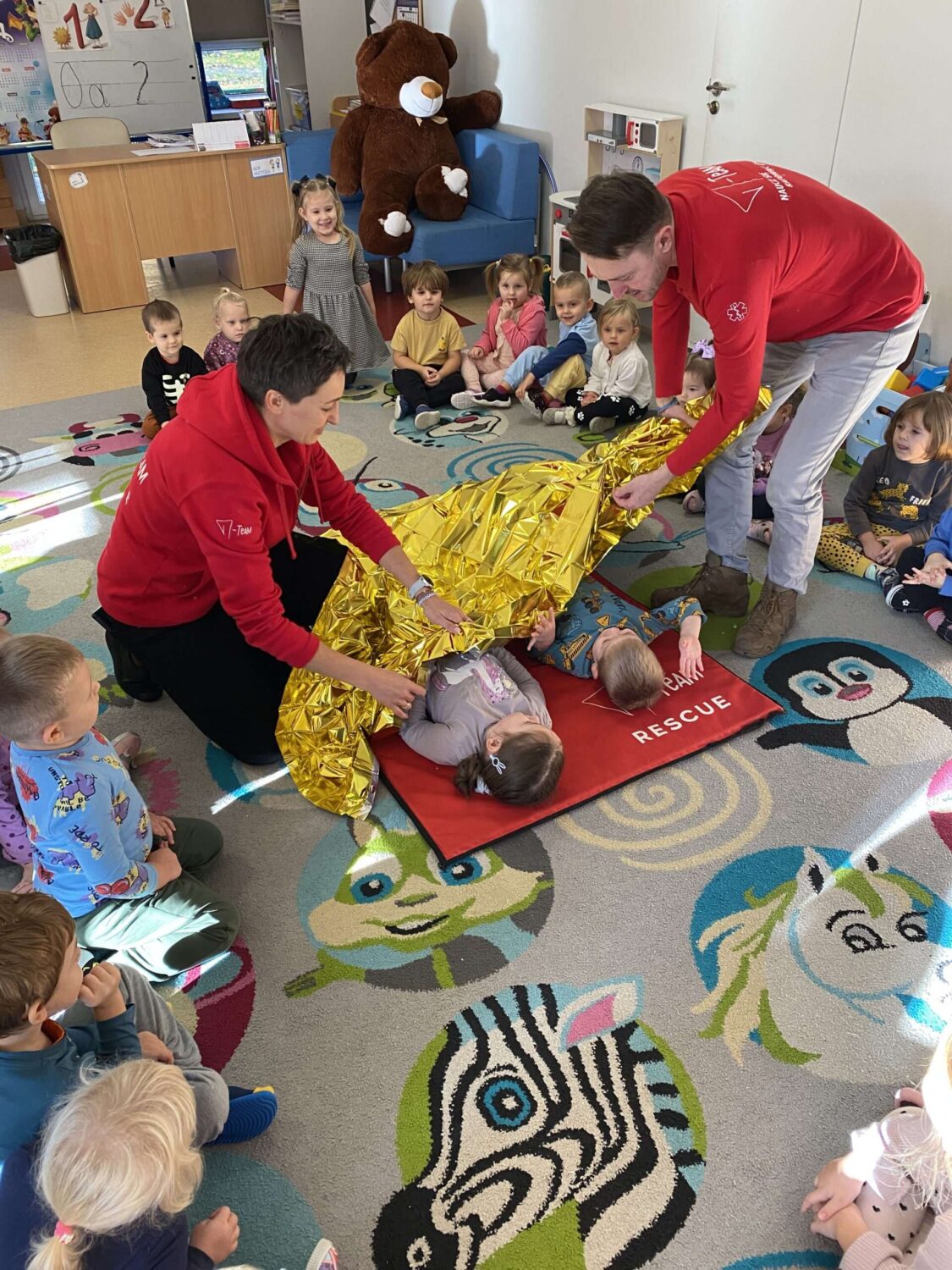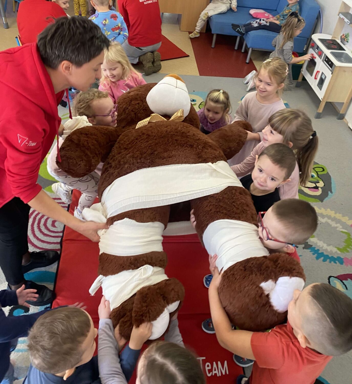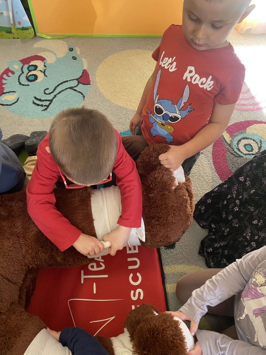 Grupa PSZCZÓŁEK uczestniczyła w ważnych i ciekawych warsztatach medycznych. Pod czujnym okiem ratowników medycznych dzieci: poznały specyfikę pracy ratownika, utrwaliły numer alarmowy 112, nauczyły się podstaw udzielania pierwszej pomocy. Na zakończenie mali uczestnicy mieli wyjątkową okazję zajrzeć do wnętrza prawdziwej karetki pogotowia.