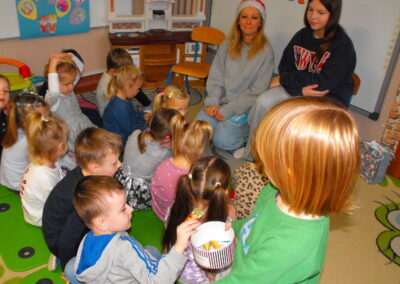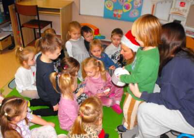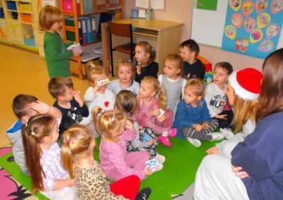 29 listopada naszą grupę odwiedziła mama i siostra Ludwika z tajemniczym kuferkiem i bardzo ciekawą książką. Pani Agnieszka wprowadziła dzieci w klimat Świąt Bożego Narodzenia. Przeczytała opowiadanie o misiu, który szukał choinki na święta. Przedszkolaki z wielkim zainteresowaniem wysłuchały historii misia. Ponadto dzieci świetnie poradziły sobie z rozwiązywaniem zagadek przygotowanych przez mamę Ludwika.