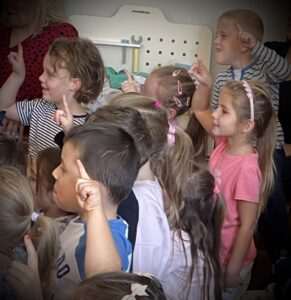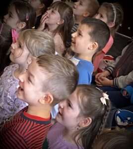 02.10 przedszkolaki przeniosły się w magiczny świat bajek, oglądając spektakl „W 7 dni dookoła bajek”. Historia Smoka Smokowskiego – niejadka, który wyrusza w podróż po bajkowych krainach, by nauczyć się odwagi i ciekawości. W czasie tej niezwykłej wyprawy smok spotkał wiele znanych postaci i przeżył mnóstwo zabawnych przygód.