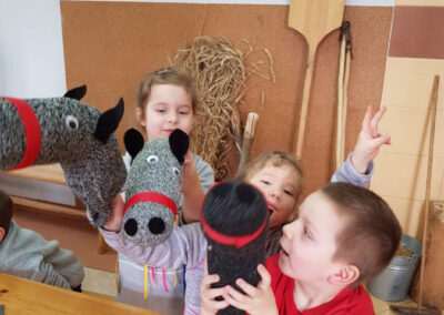 28.02.2020r. wybraliśmy się na nasze pierwsze warsztaty w Muzeum Wsi Radomskiej. Cwałem popędziliśmy do zagrody z Alojzowa na spotkanie z żywymi zwierzętami, czarnym baranem i przygodą. Następnie wykonaliśmy z pomocą nauczycieli piękne koniki.Twórcze działania dostarczyły dużo radości dzieciom.
