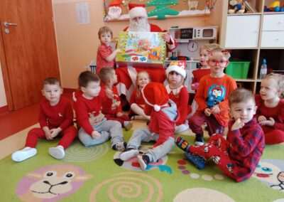 Dziś w naszym przedszkolu  pojawił się długo oczekiwany gość- Święty Mikołaj. Pszczółki już od samego rana z wielką niecierpliwością spoglądały na drzwi, nasłuchiwały „Mikołajowych” dzwoneczków. Dzieci przygotowały dla Mikołaja niespodziankę- zaśpiewały piękną piosenkę. Następnie Święty Mikołaj  obdarował wszystkie dzieci pięknymi prezentami. Spotkanie z Mikołajem minęło w bardzo miłej atmosferze i przyniosło dzieciom wiele radości. Mikołaj chętnie zostałby dłużej w naszym przedszkolu, lecz na Jego odwiedziny czekały przecież inne dzieci. Cieszymy się, że Św. Mikołaj o nas pamiętał i czekamy na jego wizytę w przyszłym roku. Do widzenia Mikołaju!