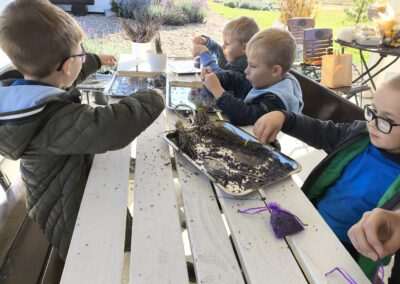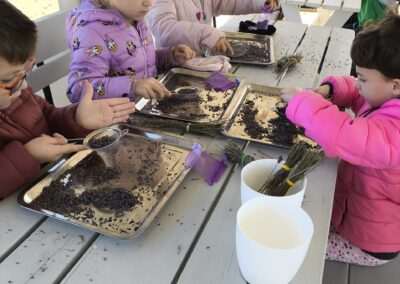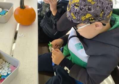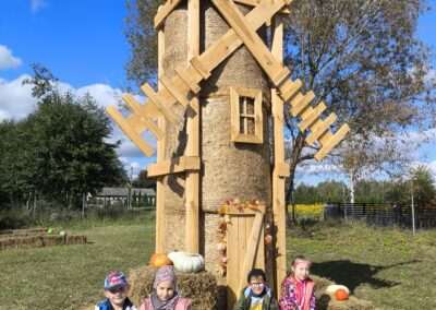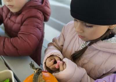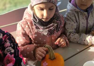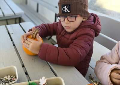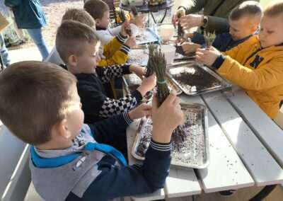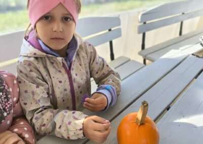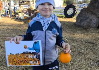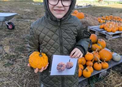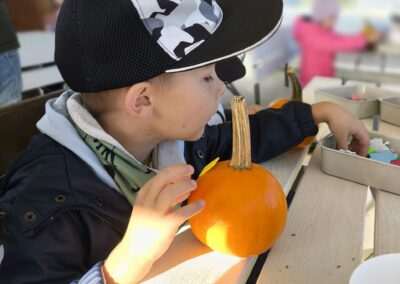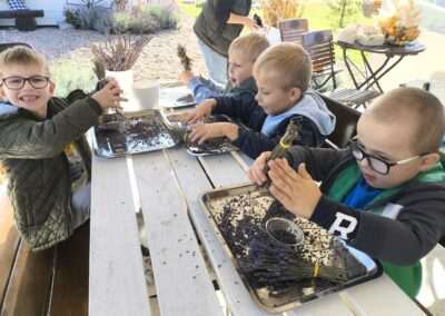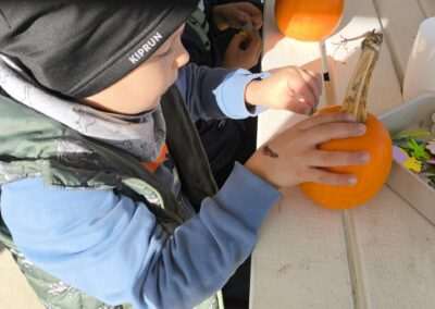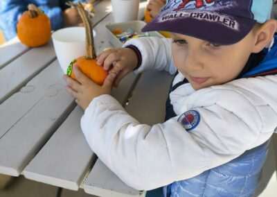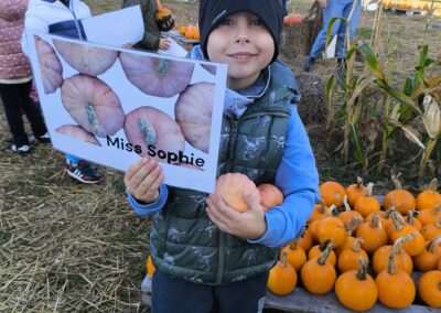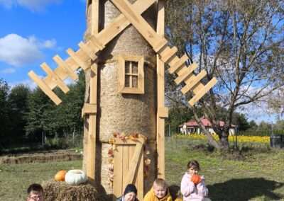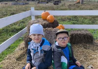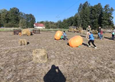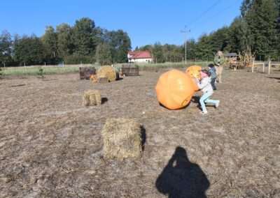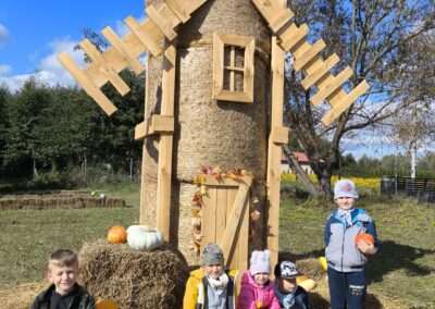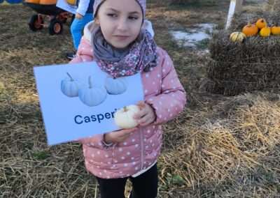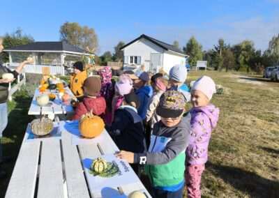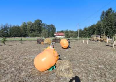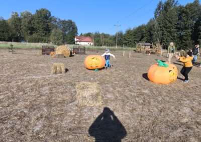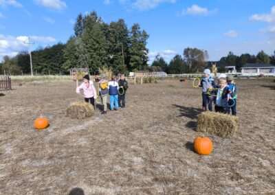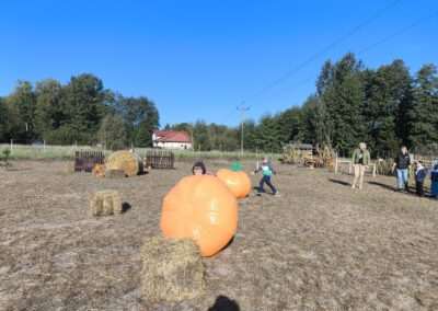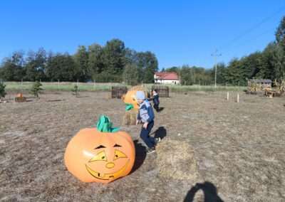 1 pażdziernika wybraliśmy się na Lewendyniowe pole do Parznic. Byliśmy zachwyceni, jak zobaczyliśmy już na miejscu te piękne dynie i lawendy! W pierwszym zadaniu zamieniliśmy się w detektywów i szukaliśmy dyń- każdy z nas miał inną dynię. Byliśmy zaskoczeni jak wiele dyń i jakie śmieszne nazwy niektóre mają! Szukalismy również najmniejszej i największej dyni na polu i patrzyliśmy, czy dynie się zatopią w wiadrze w wodzie czy  nie- byliśmy w szoku, że jednak umieją pływać! Później podzieliliśmy się na drużyny i mieliśmy kilka ruchowych zabaw, np. toczyliśmy taką wielgachną dynię! Ozdabialiśmy również dynię naklejkami i robiliśmy samodzielnie saszetki lawendowe- bardzo dobrze się bawiliśmy przy tym, a co najfajniejsze mogliśmy zabrać to do domu! Doiliśmy też krowę, na co czekaliśmy już od kilku dni i to też była świetna zabawa. Na koniec obejrzeliśmy filmik, jak z nasionka powstaje dynia (co też zobaczyliśmy na żywo) i dowiedzieliśmy się, że dynia potrafi urosnąć bardzo daleko od nasionka. To był dzień pełen wrażeń i zabaw!